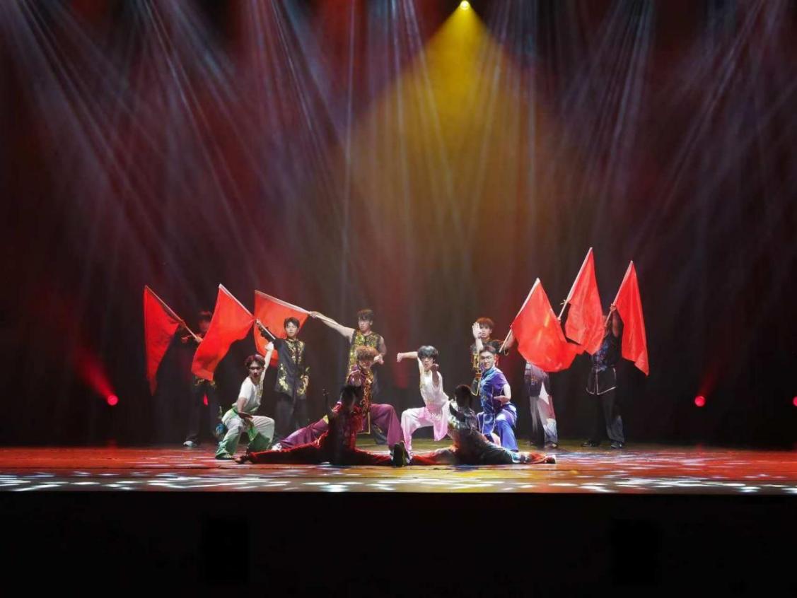 本次晚会以“挺膺担当传薪火 青春奋进向未来”为主题,分为“挺膺担当·薪火相传”“携手奋进·共谱华章”“聚力青春·齐绘山河”三个篇章。晚会在气势恢宏的武术表演《旗舞》中拉开帷幕,刚劲的武术动作与飘扬旗帜相互映衬,瞬间点燃现场热情,奏响了青春集结的号角。
