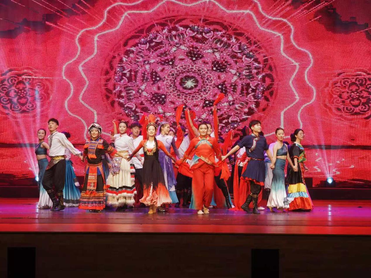 第三篇章“聚力青春·齐绘山河”。新闻学院带来诗朗诵《永恒的记忆》,深情朗诵带领大家回顾难忘岁月;研究生院、化学化工学院等合作舞蹈《生命之河》,灵动舞姿诠释生命蓬勃;音乐学院青年教师李娜、程雪彬献上女声二重唱《我的青山绿水》,美妙和声唱出对绿水青山的珍视。晚会在同心艺术团带来的民族大联欢《石榴花开·幸福圆》中落下帷幕,各民族学子载歌载舞,展现出校园各民族一家亲的和谐美好画面。